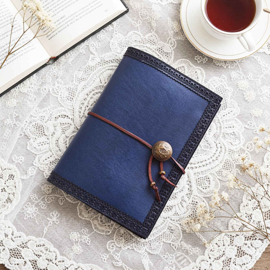 クラシックなデザインの本革手帳カバー